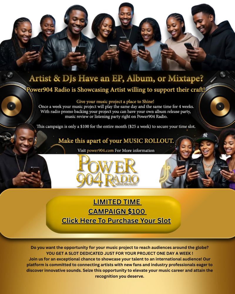 Power904 blends music, interviews, and DJ-driven shows into nonstop entertainment. With representation in Atlanta, Texas, and Orlando, we bring media and event energy wherever our listeners are. We’re always creating fresh content, live sessions, behind the scenes moments, and interactive segments that keep our audience locked in.